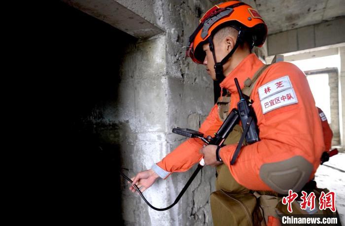 圖為演練中正在搜索被困人員。西繞拉翁 攝