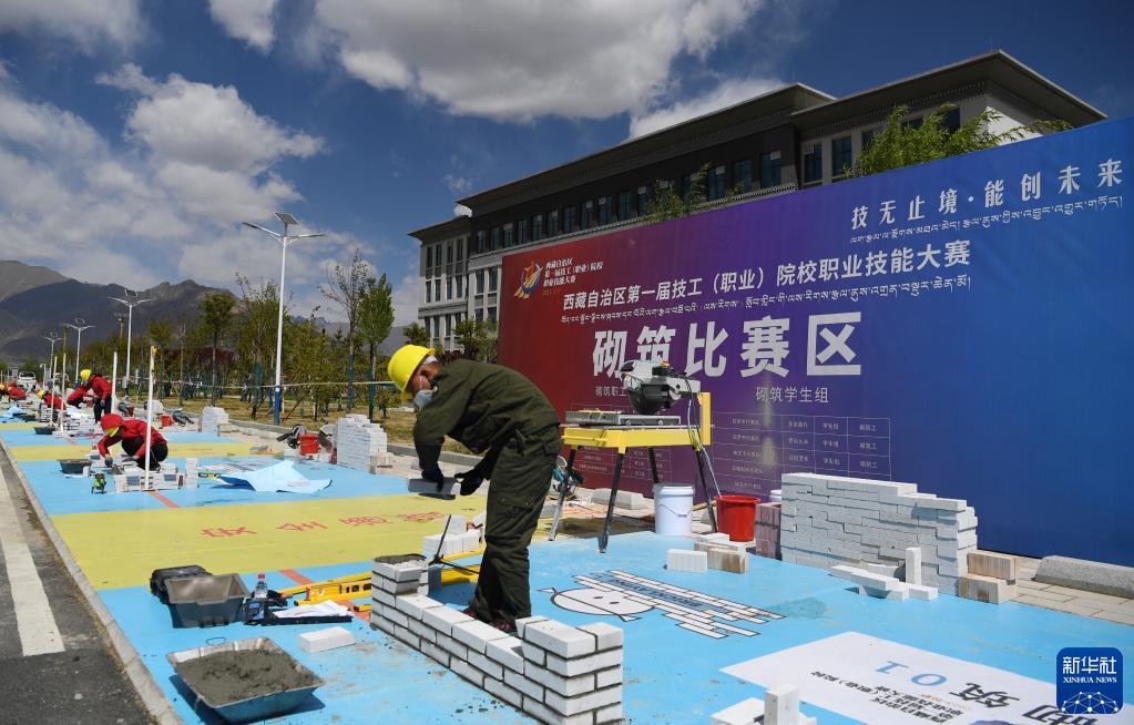 5月10日拍攝的西藏自治區(qū)第一屆技工(職業(yè))院校職業(yè)技能大賽砌筑比賽現(xiàn)場(chǎng)。新華社記者 張汝鋒 攝