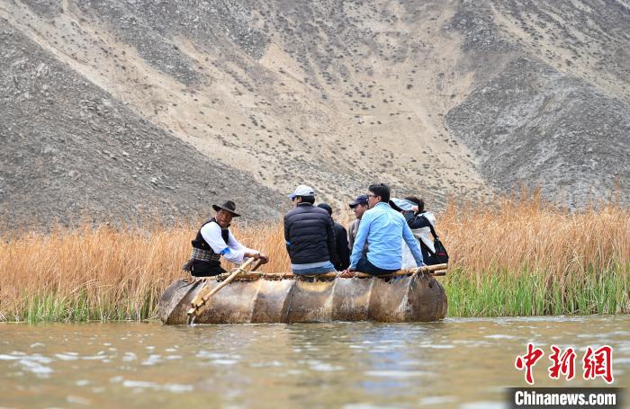 圖為游客體驗俊巴漁村牛皮船。趙朗 攝