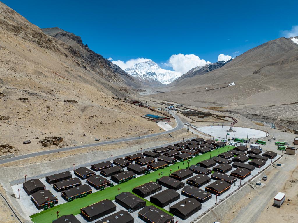 珠峰游客大本營位于西藏日喀則市定日縣扎西宗鄉(xiāng),是游客能到達(dá)距離珠峰最近的地方。想要看珠峰日出、日落和星夜的游客們,通常會(huì)選擇游客大本營的帳篷旅館。一排排黑色牦牛毛編制而成的帳篷,成了珠峰腳下一道獨(dú)特的風(fēng)景。
