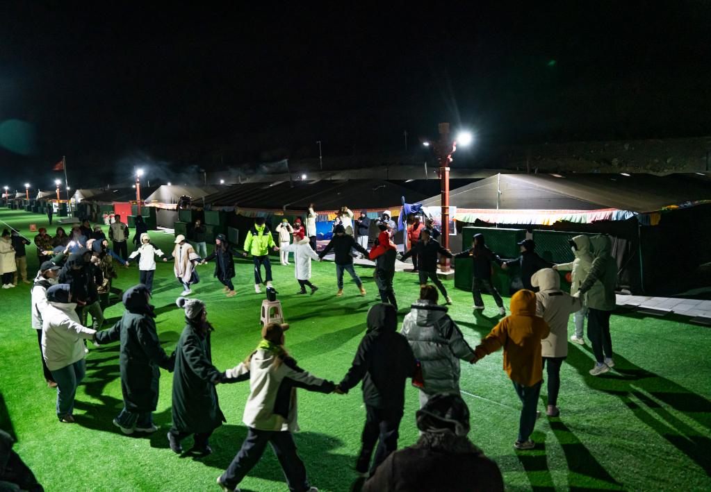 生長在珠峰腳下,又是“00后”大學(xué)生創(chuàng)業(yè)者,扎西次仁覺得自己的優(yōu)勢(shì)在于能為游客講解當(dāng)?shù)孛袼缀椭榉逑嚓P(guān)知識(shí),也更了解年輕游客的需求。日落之后,他會(huì)組織客人在帳篷間的空地上一起唱歌、跳鍋莊。