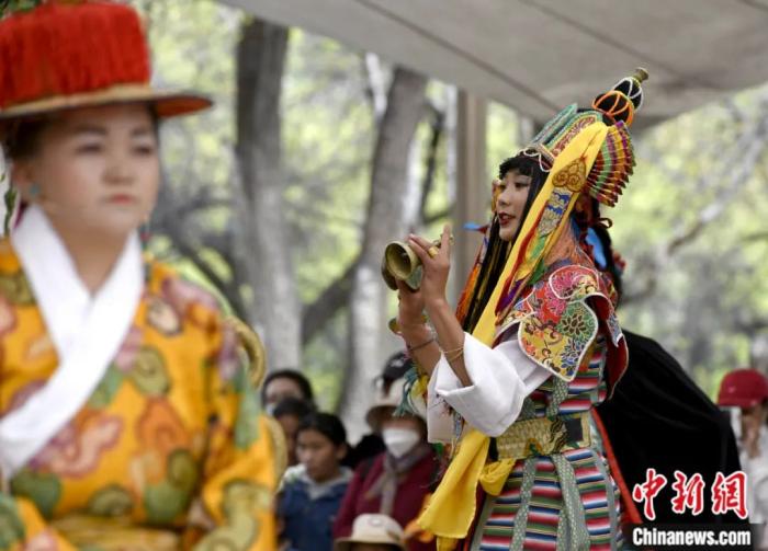 被譽(yù)為藏文化“活化石”的藏戲,集說(shuō)唱、表演、歌舞、文學(xué)于一體。李林 攝
