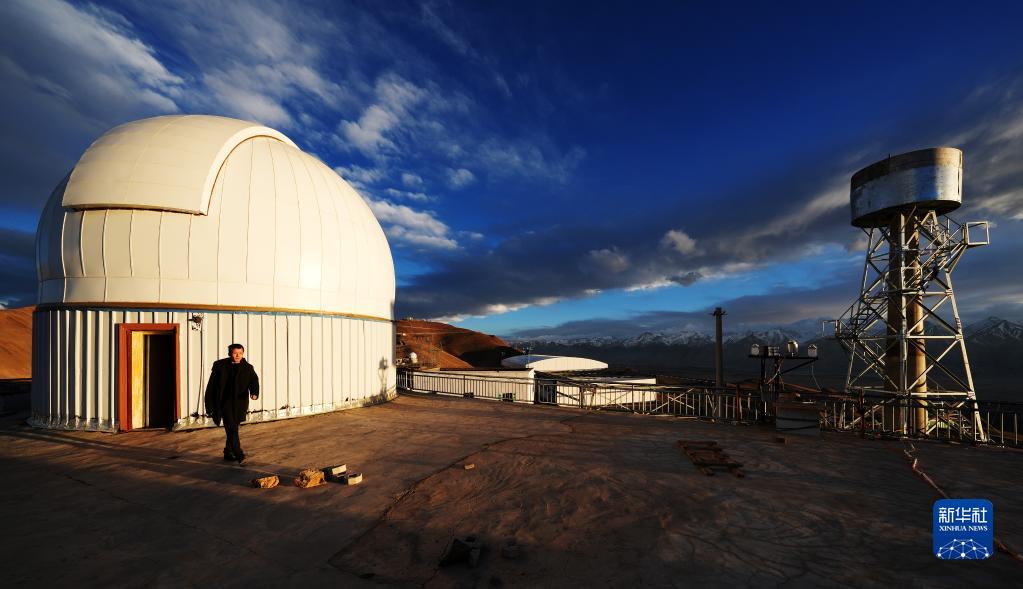 5月24日,日落時分,在阿里天文臺,尤顯龍走出望遠(yuǎn)鏡圓頂。新華社記者 費茂華 攝