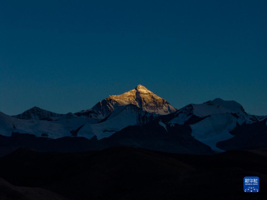 這是5月9日日落時(shí)分拍攝的珠穆朗瑪峰。新華社記者 孫非 攝