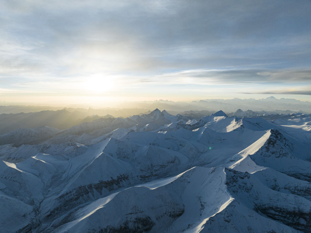 這是在海拔8000米左右高空拍攝的喜馬拉雅山脈群山(5月23日攝,無(wú)人機(jī)照片)。新華社記者 洛卓嘉措 攝