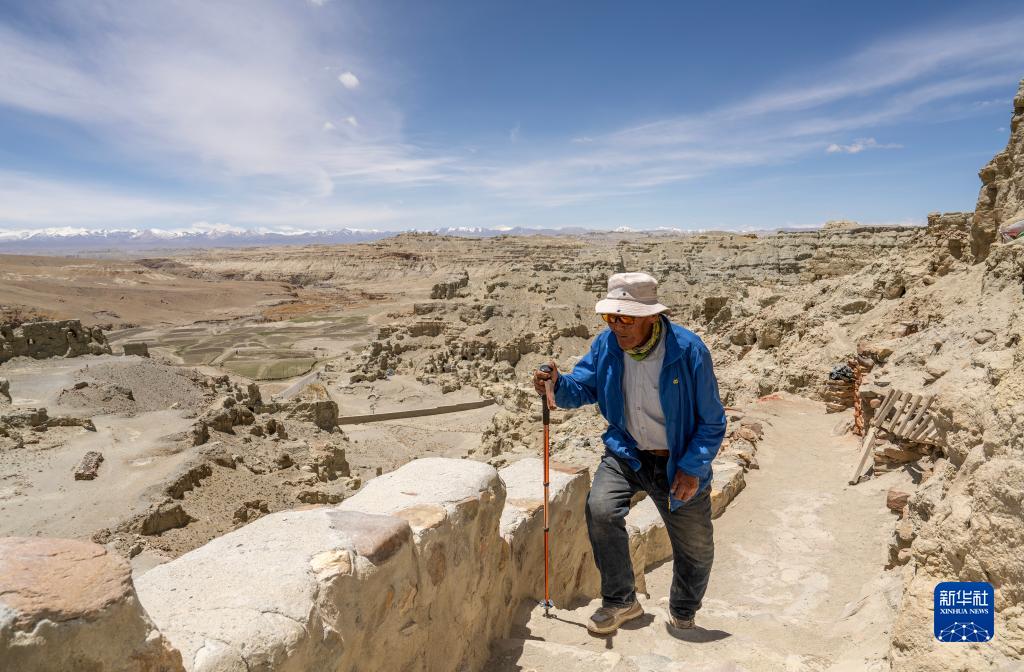 仁增旺扎老人巡查各個石窟,這是他多年來的習(xí)慣(5月26日攝)。新華社記者 晉美多吉 攝