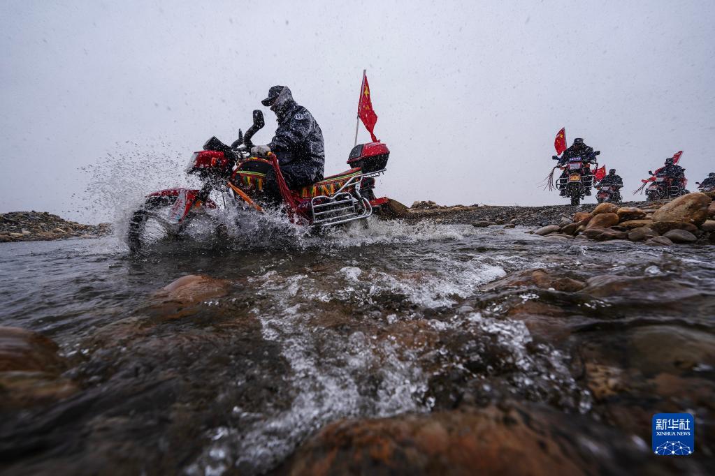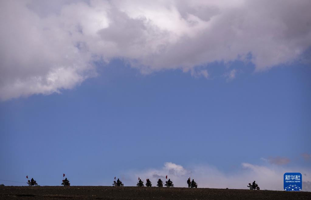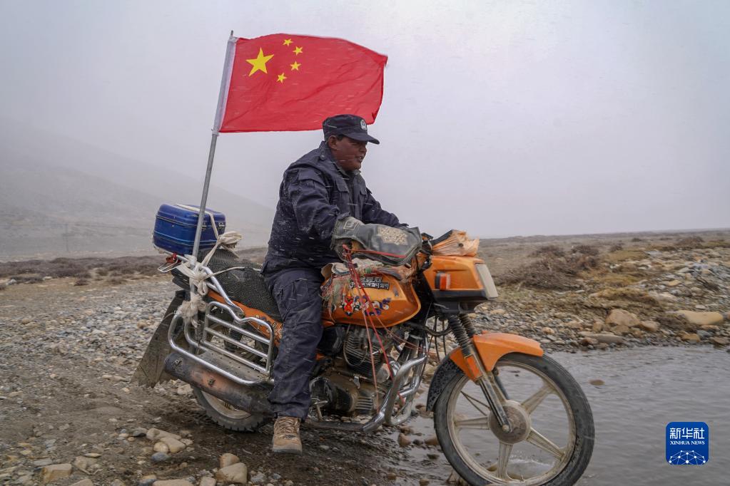 車(chē)輪滾滾,黃沙漫漫,一隊(duì)摩托車(chē)風(fēng)馳電掣般駛來(lái)……這里是平均海拔超過(guò)5000米的西藏日喀則市薩嘎縣昌果鄉(xiāng),雖然已是初夏時(shí)節(jié),但依然寒風(fēng)刺骨。50歲的昌果護(hù)邊聯(lián)防隊(duì)隊(duì)長(zhǎng)石角帶領(lǐng)18名隊(duì)員,騎著摩托車(chē)在邊境線巡邏。