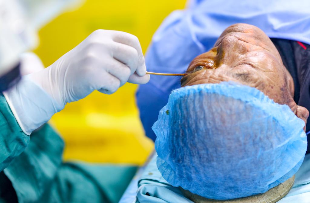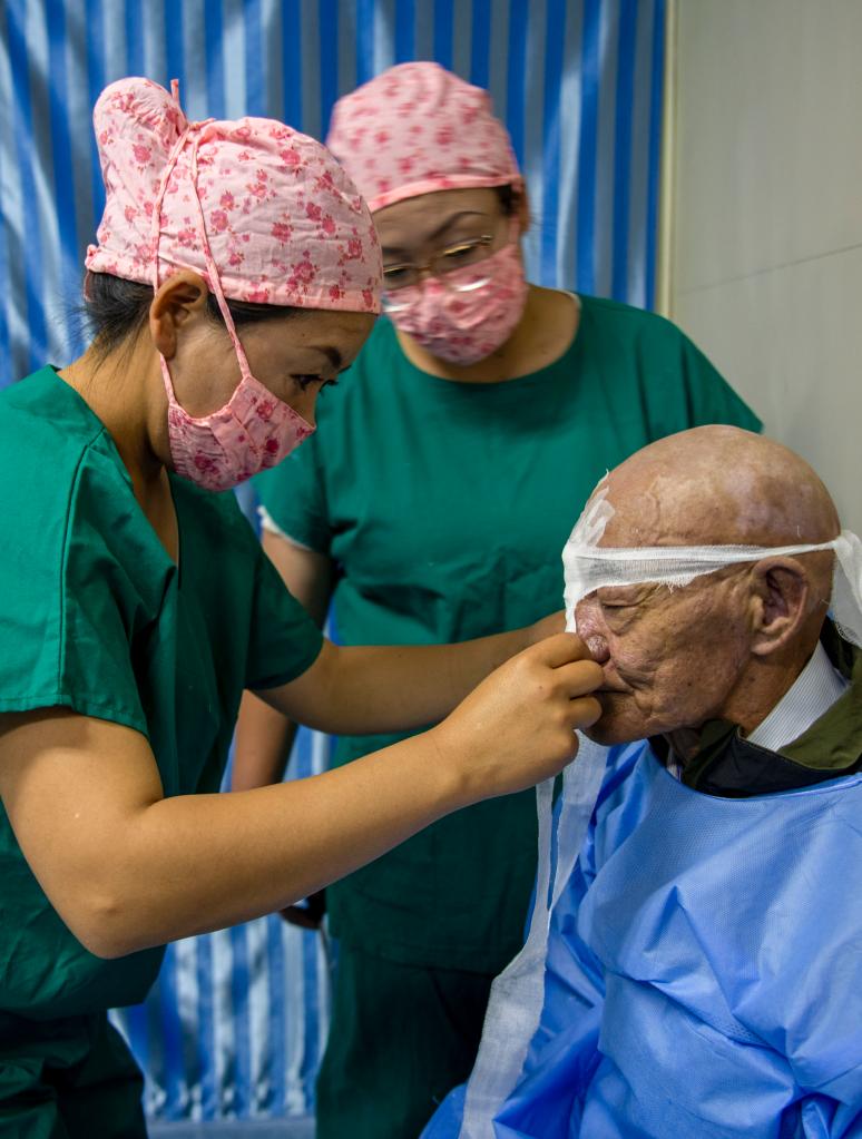 6月8日,光明眼科康復(fù)診療院的醫(yī)生在為一位農(nóng)牧民患者做白內(nèi)障手術(shù)。