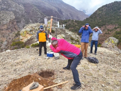 科考人員在挖基坑