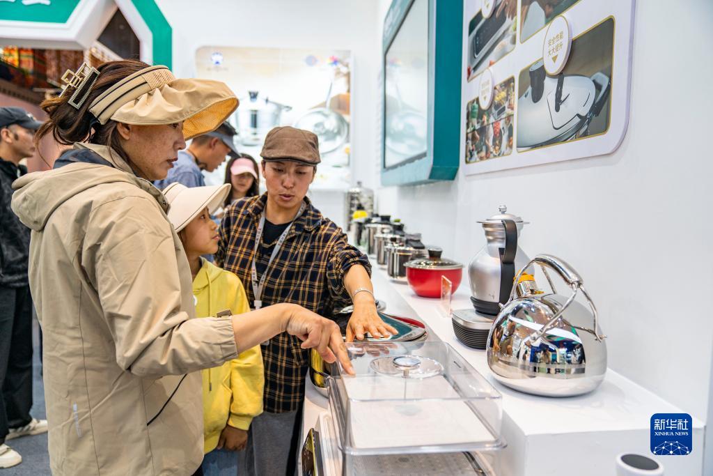 6月17日,工作人員在第五屆藏博會(huì)現(xiàn)場為參觀者介紹產(chǎn)品。新華社記者 孫非 攝