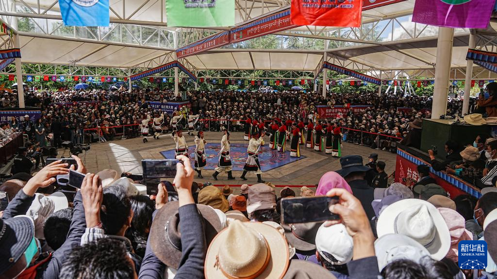 ??6月22日,拉薩市首屆鍋莊舞大賽在布達拉宮腳下的宗角祿康公園舉辦,吸引全市36支隊伍參賽。