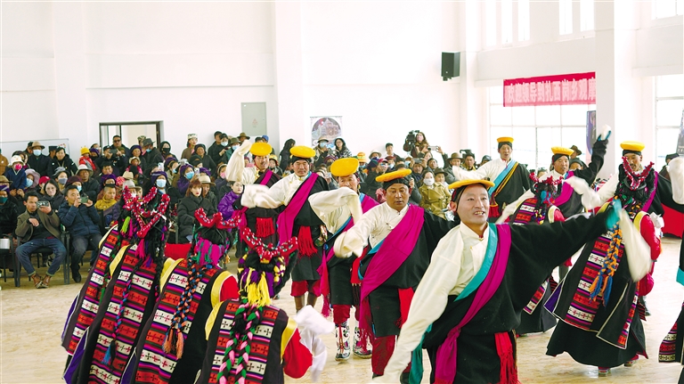 圖為甲瑪鄉(xiāng)“諧欽”藝術(shù)團表演“甲瑪諧欽”。記者 格桑倫珠 攝
