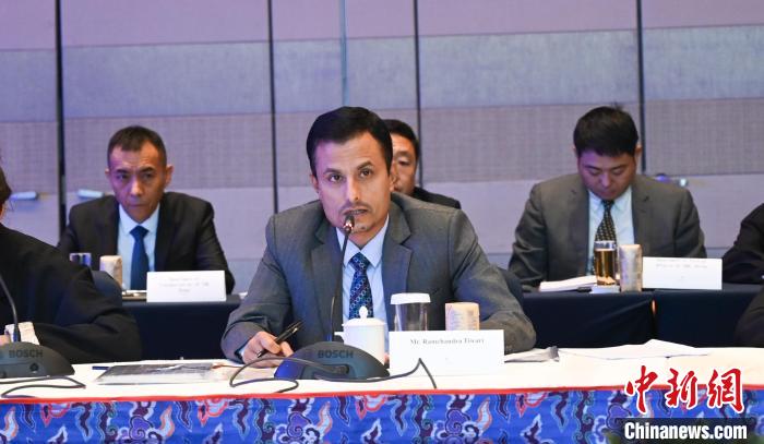圖為尼方代表團(tuán)團(tuán)長、尼泊爾工業(yè)、商業(yè)和供應(yīng)部聯(lián)秘拉姆贊德拉·迪瓦日致辭。趙朗 攝