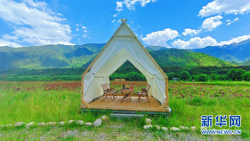 “游客在這里不僅可以賞花、采摘,還能體驗(yàn)露營、親子樂園、燒烤等娛樂項(xiàng)目?!惫げ蓟ü绒r(nóng)業(yè)觀光生態(tài)園負(fù)責(zé)人李磊介紹道,“園區(qū)除了支付朵當(dāng)村土地租金,還雇了不少村民在這里工作?!?/p>