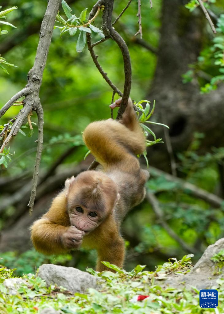 這是在勒布溝拍攝到的獼猴(7月29日攝)。新華社記者 姜帆 攝