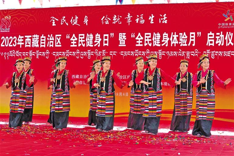 8月8日,是第15個(gè)“全民健身日”。為深入貫徹落實(shí)全民健身國家戰(zhàn)略,全面展示西藏廣泛開展全民健身活動成果,推進(jìn)健康西藏建設(shè),2023年西藏自治區(qū)“全民健身日”暨“全民健身體驗(yàn)月”啟動儀式在拉薩市賽馬場舉行。來自全區(qū)各地的健身愛好者,表演了鍋莊、健身操、太極拳、柔力球等群眾喜聞樂見的健身項(xiàng)目,科學(xué)引導(dǎo)群眾積極參與體育鍛煉、增強(qiáng)體魄、健康生活。