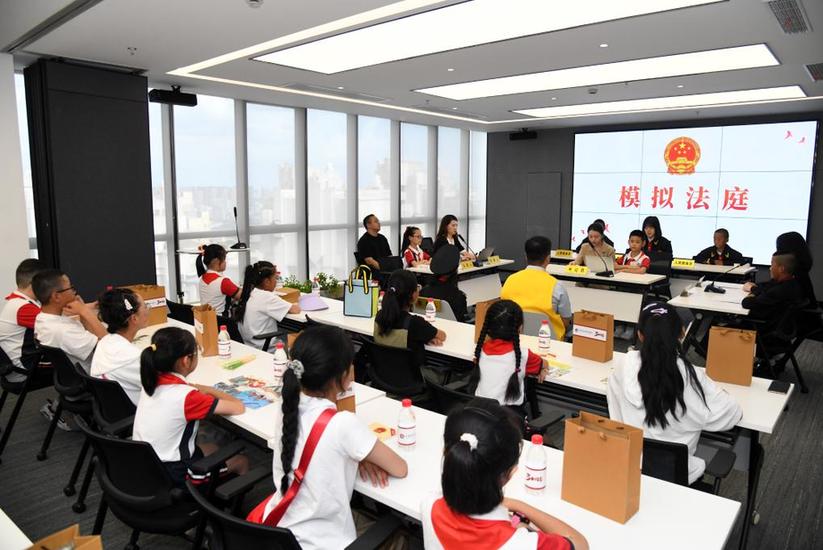 此次行程中,兩地學(xué)生沉浸式體驗(yàn)了一起“模擬法庭”庭審。他們穿上法官袍、檢察制服、律師袍、法警服,分別化身為小法官、小檢察官、小書(shū)記員、小辯護(hù)人,隨著清脆的法槌聲響起,“模擬庭審”有板有眼地依序進(jìn)行。三年級(jí)西藏學(xué)生旦增拉吉說(shuō),看完庭審,我懂得了學(xué)習(xí)法律知識(shí)的重要性,感受到司法的神圣和威嚴(yán)。
