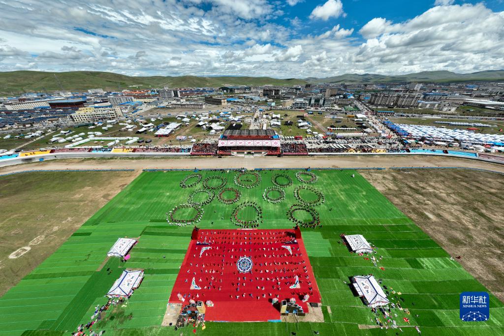 這是8月10日拍攝的開幕式現(xiàn)場(無人機照片)。新華社發(fā)(旦增努布攝)