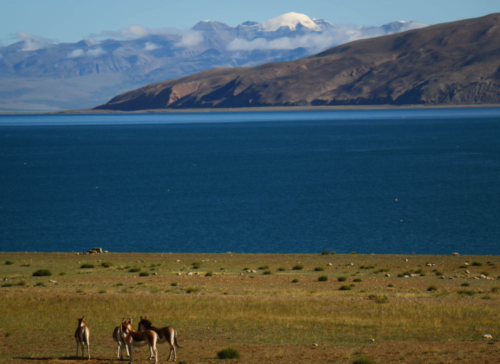 拉昂錯位于西藏阿里地區(qū)普蘭縣東北部的霍爾鄉(xiāng),湖面海拔4573米。拉昂錯與圣湖瑪旁雍錯相鄰,僅以一條公路相隔,遠處岡底斯山脈的主峰岡仁波齊巍峨聳立。藏野驢是國家一級保護動物,青藏高原特有物種,近年來隨著西藏生態(tài)保護力度不斷增大,藏野驢數(shù)量由原來的5萬只左右增加至現(xiàn)在的約9萬只。