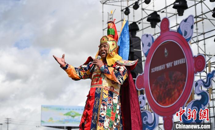 圖為嘎桑頓珠登臺(tái)表演。趙朗 攝