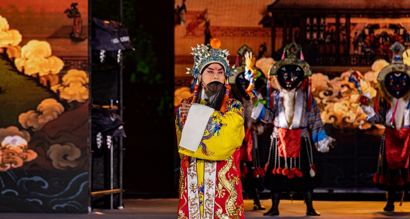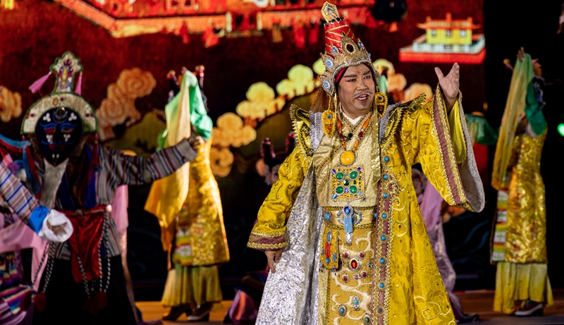 在2023拉薩雪頓節(jié)開幕式文藝演出上,京劇藏戲《文成公主》再次上演(8月16日攝)。丁增尼達(dá) 攝