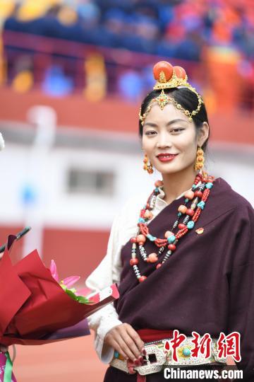 圖為開幕式上穿著節(jié)日盛裝的演員。貢嘎來松 攝