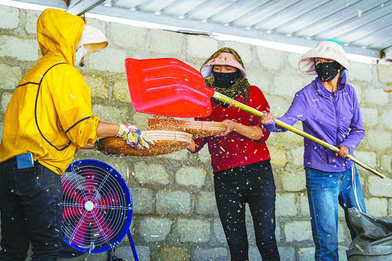 村民們在揚(yáng)場。 記者 阿旺尼瑪 攝
