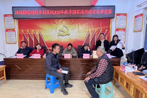 今年是《中華人民共和國(guó)國(guó)家通用語言文字法》頒布施行22周年。為持續(xù)深入推進(jìn)國(guó)家通用語言文字學(xué)習(xí),鑄牢中華民族共同體意識(shí),豐富群眾精神文化生活,西藏自治區(qū)黨校駐村工作隊(duì)創(chuàng)新學(xué)習(xí)方式和學(xué)習(xí)載體,于9月7日舉辦昌都市江達(dá)縣江達(dá)鎮(zhèn)嘎通村鄉(xiāng)村夜校2023年秋季國(guó)家通用語言文字競(jìng)賽。縣有關(guān)部門領(lǐng)導(dǎo)、駐村工作隊(duì)全體成員、村“兩委”和黨員群眾代表共計(jì)60余人參加。競(jìng)賽由縣委副書記、駐村總領(lǐng)隊(duì)、駐村工作隊(duì)隊(duì)長(zhǎng)王煦樟和鄉(xiāng)村振興專干貢秋拉姆主持。