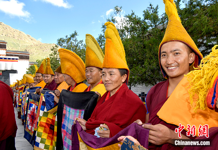 9月12日,班禪回到駐錫地扎什倫布寺,扎什倫布寺僧眾以最高禮儀迎接。中新社記者 李林 攝