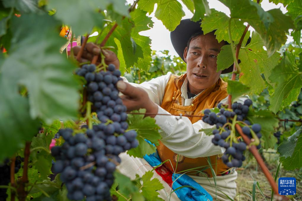 9月23日,村民在桑日縣葡萄基地內(nèi)采摘葡萄。新華社記者 黃智琪 攝