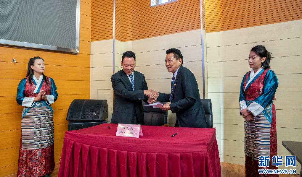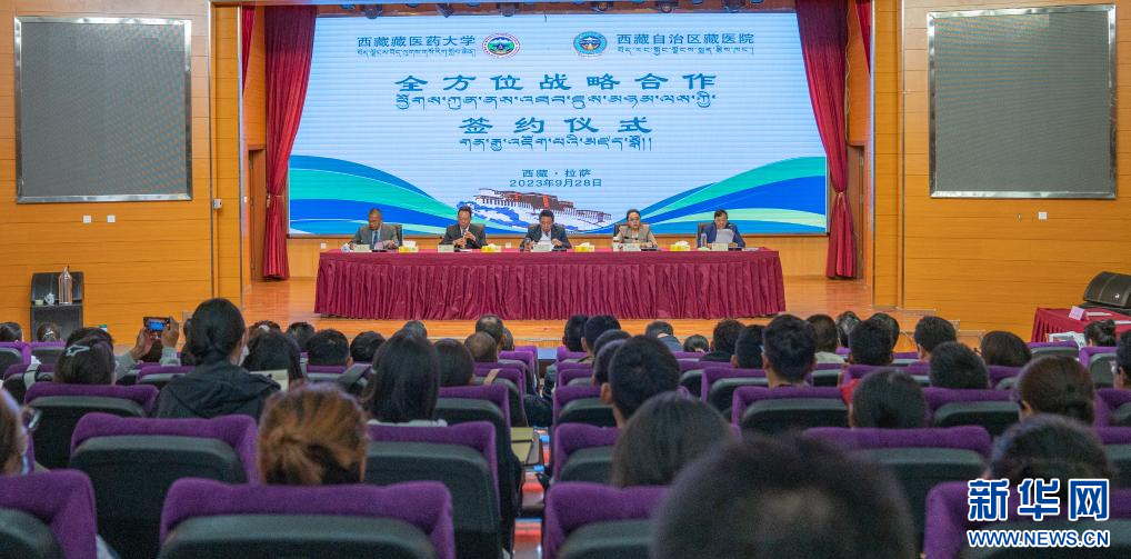 西藏藏醫(yī)藥大學(xué)與西藏自治區(qū)藏醫(yī)院全方位戰(zhàn)略合作簽約儀式現(xiàn)場(chǎng)(9月28日攝)。新華社發(fā)(丁增尼達(dá)攝)
