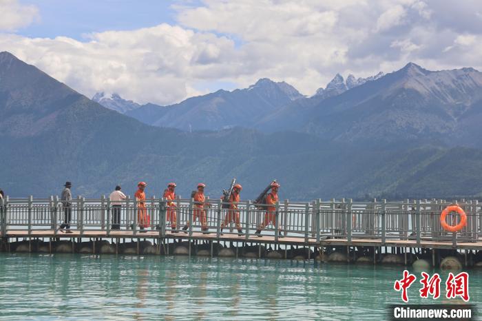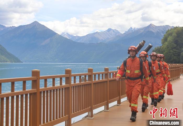 圖為消防員正在景區(qū)巡邏。西繞拉翁 攝