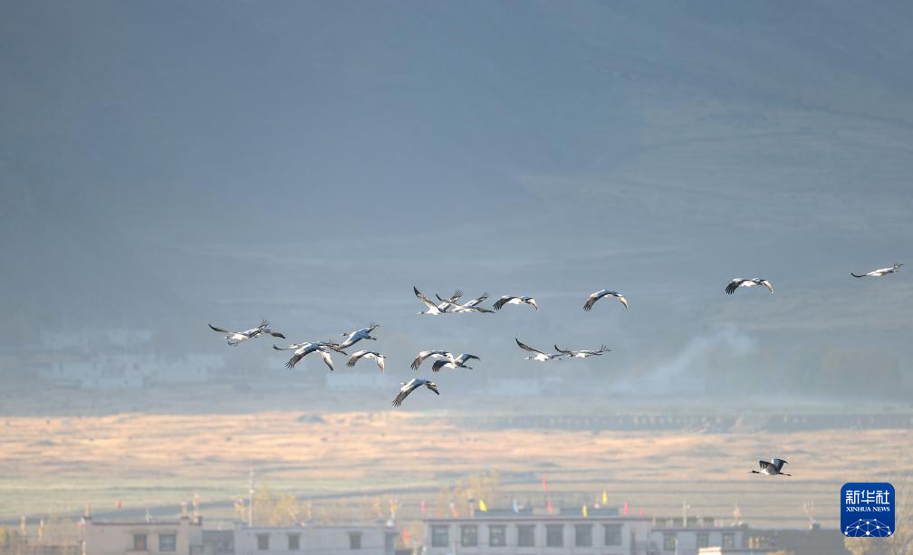 10月下旬,西藏自治區(qū)拉薩市林周縣迎來2023年第一批越冬黑頸鶴。它們將在這里一直待到來年三四月份。黑頸鶴是國家一級保護動物,主要棲息在海拔2500米至5000米的高原、草甸、沼澤地帶。拉薩北部的林周縣平均海拔約4200米,是黑頸鶴的主要越冬地之一。