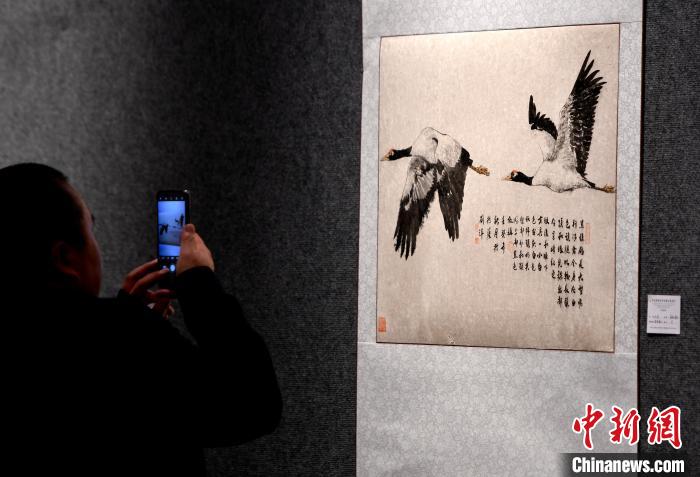 圖為觀眾正在拍攝展覽中的美術(shù)作品。李林 攝