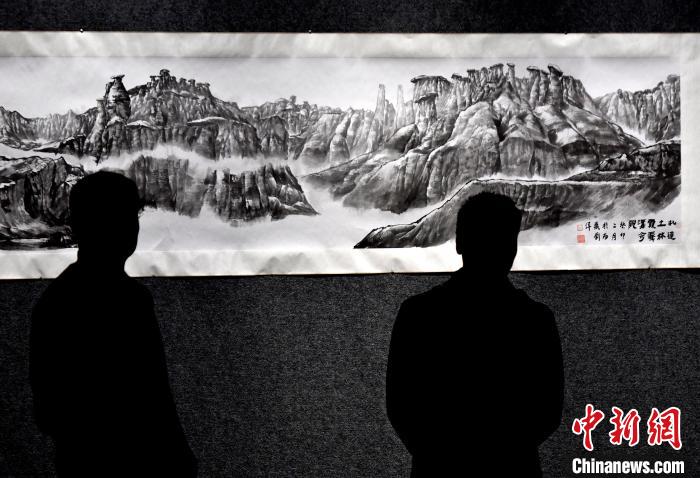 圖為觀眾正在欣賞展覽中的美術(shù)作品。李林 攝