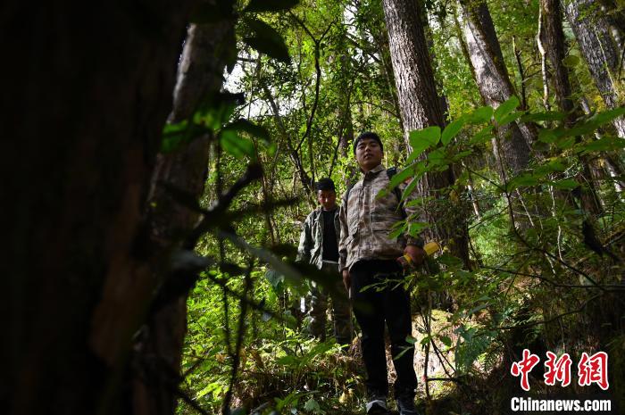 3名管護(hù)員到達(dá)格當(dāng)鄉(xiāng)最深處的一片原始森林。正值深秋,對(duì)于管護(hù)員們來(lái)說(shuō)是最好的季節(jié),雨季結(jié)束,蚊蟲也少。他們僅帶了背包和道具,管護(hù)站副站長(zhǎng)索朗羅珠說(shuō):“今天不用過(guò)夜,帶的裝備很簡(jiǎn)單?!?/p>