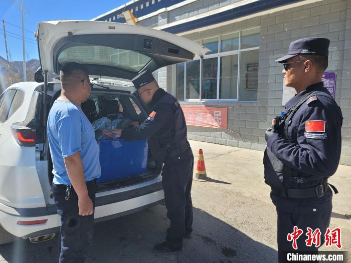 圖為西藏日喀則邊境管理支隊(duì)魯魯邊境檢查站民警對(duì)過(guò)往車(chē)輛及隨車(chē)人員進(jìn)行檢查。魯魯邊境檢查站供圖