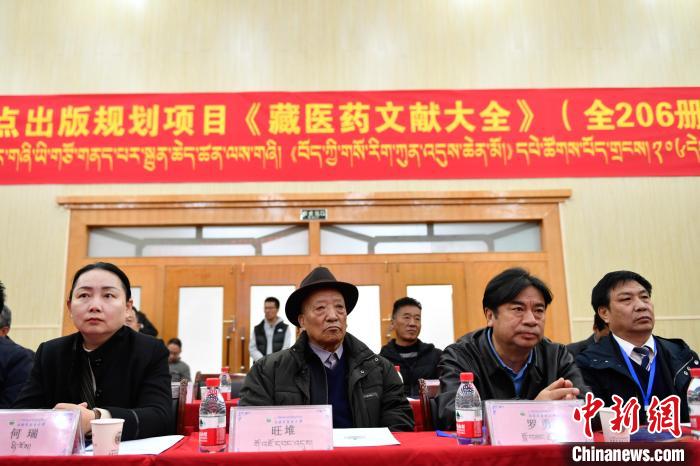 圖為 《藏醫(yī)藥文獻(xiàn)大全》首發(fā)暨贈書儀式現(xiàn)場。貢嘎來松 攝