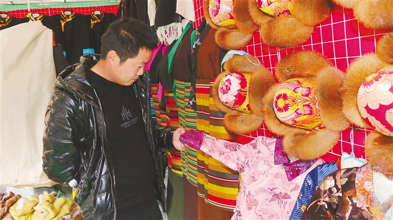 圖為顧客在為家人選購(gòu)藏式服裝。