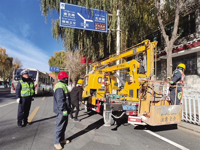 為消除安全隱患,營造安全、整潔的道路環(huán)境,拉薩市公安局交警支隊(duì)組織協(xié)調(diào)園林部門工作人員,對遮擋紅綠燈的樹枝進(jìn)行清理修剪?!芭c交警部門協(xié)調(diào)后,為更好地開展城鄉(xiāng)環(huán)境綜合整治行動,讓廣大司機(jī)出行更加方便,我們對遮擋信號燈、標(biāo)識標(biāo)牌的樹木進(jìn)行了修剪?!崩_城關(guān)區(qū)潔達(dá)園林綠化投資工程有限公司二分公司負(fù)責(zé)人巴桑次仁說。