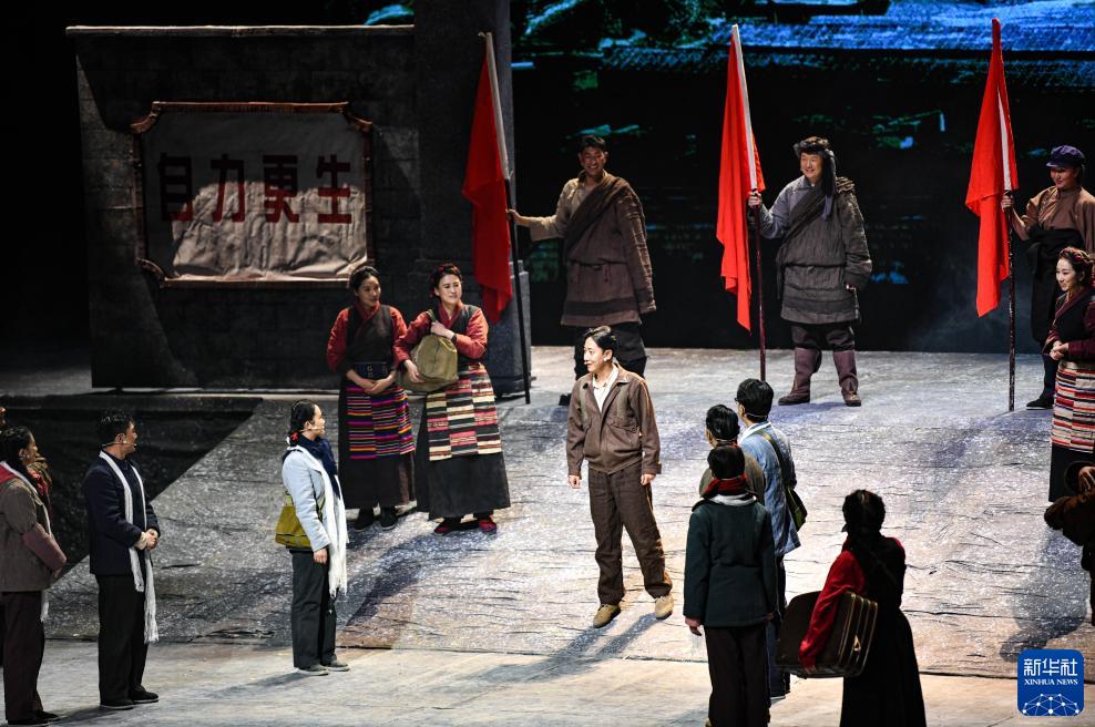 當(dāng)日,話劇《老西藏》在西藏大劇院首演。該劇是西藏自治區(qū)文化廳打造的重點(diǎn)原創(chuàng)劇目,聚焦不同時期文化、水利、交通、教育、衛(wèi)生等各條戰(zhàn)線上的西藏建設(shè)者,講述他們奉獻(xiàn)青春年華的熱血故事。
