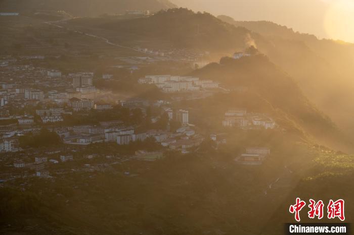 12月21日,日落時分西藏墨脫縣縣城風光。中新社記者 江飛波 攝