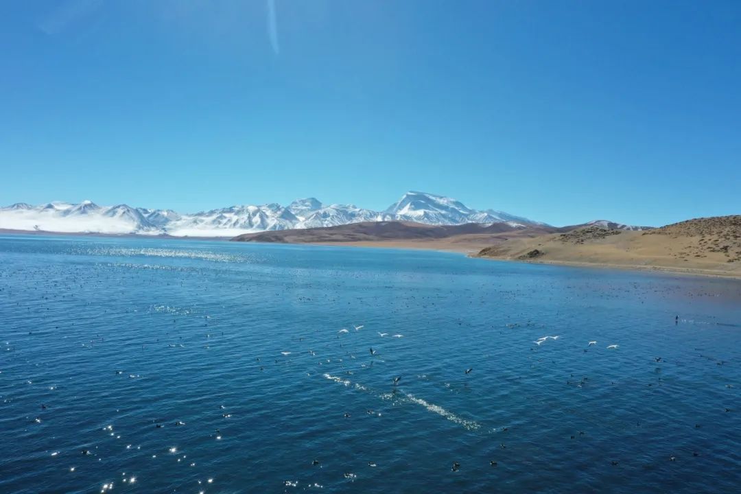 夏季的普莫雍錯,湖水清澈,冬天的普莫雍錯湖面會隨著溫度降低結(jié)冰,表層通透可見湖底,裂紋蔓延整個湖面,在陽光的照射下,呈現(xiàn)出極致的藍,美麗又浪漫,有著世界海拔最高、中國最大的藍冰湖美譽,也被稱為“中國的貝加爾湖”,它所擁有的是西藏也是中國最夢幻純凈的藍色。