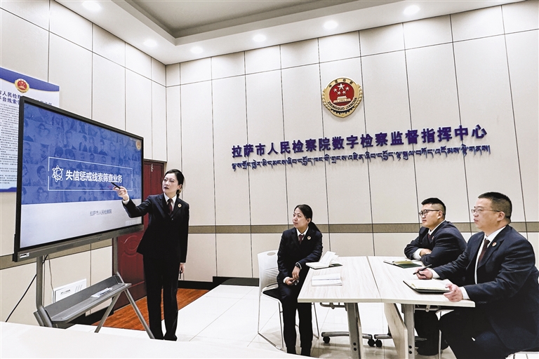 拉薩市人民檢察院檢察官通過(guò)數(shù)字檢察監(jiān)督平臺(tái)對(duì)失信懲戒不當(dāng)線(xiàn)索進(jìn)行人工研判。