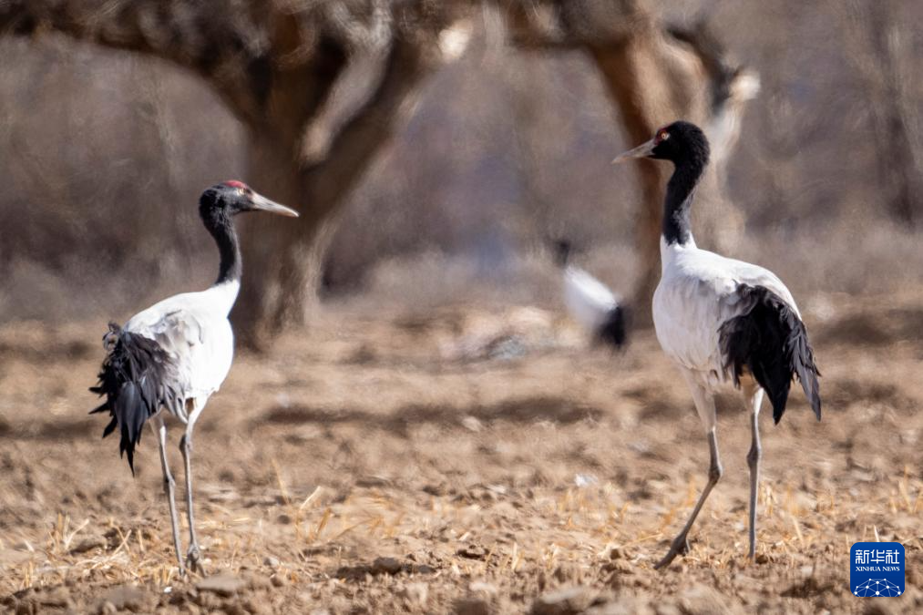 這是1月27日在西藏南木林縣艾瑪鄉(xiāng)田間拍攝到的黑頸鶴。新華社發(fā)(旦增努布攝)