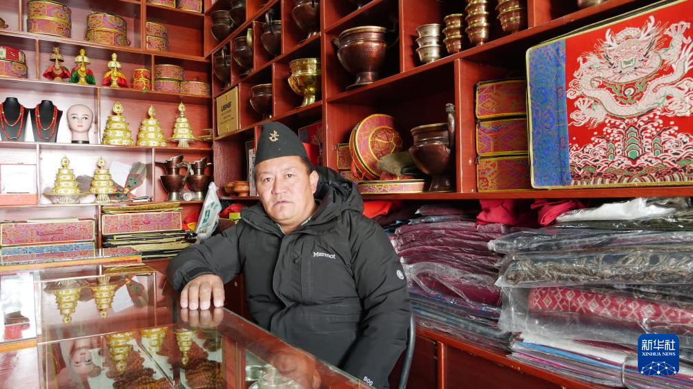在普蘭縣唐嘎邊貿市場里經商的尼泊爾籍商人米瑪(1月7日攝)。新華社記者 陳尚才 攝