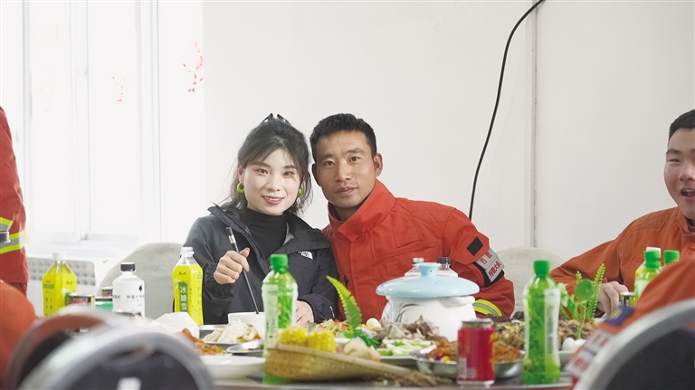 在大隊(duì)里,孫再藏與妻子一起包餃子、貼春聯(lián)、看春晚,和消防員們共同歡度佳節(jié)。除夕夜,孫再藏和妻子手挽著手,在操場(chǎng)上漫步。妻子抬頭看著丈夫,眼中充滿(mǎn)了驕傲和溫柔。她說(shuō):“你們過(guò)年還挺熱鬧的,好好站崗值班,家里不用擔(dān)心,有我呢?!?/p>