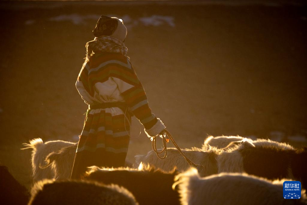 丹增在尼瑪縣俄久鄉(xiāng)馬遷村老家的草場上牧羊(2023年12月18日攝)。新華社 姜帆 攝