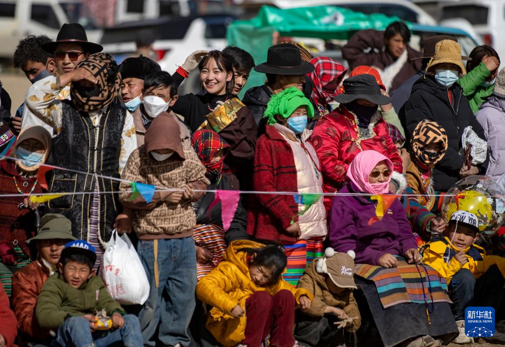 丹增(中)在森布日生態(tài)搬遷安置點觀看賽馬(2024年1月24日攝)。新華社 姜帆 攝