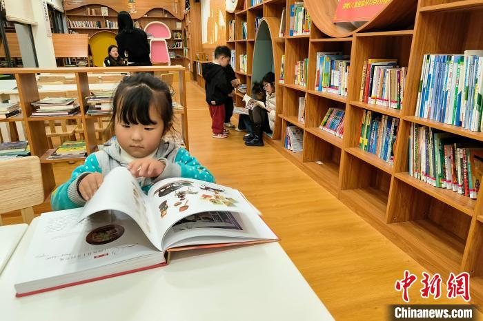 2023年12月22日晚,一位兒童在墨脫縣蓮花書屋翻閱畫冊,據(jù)悉該書屋有圖書上萬冊,是西藏最大的縣級書屋。中新社記者 江飛波 攝